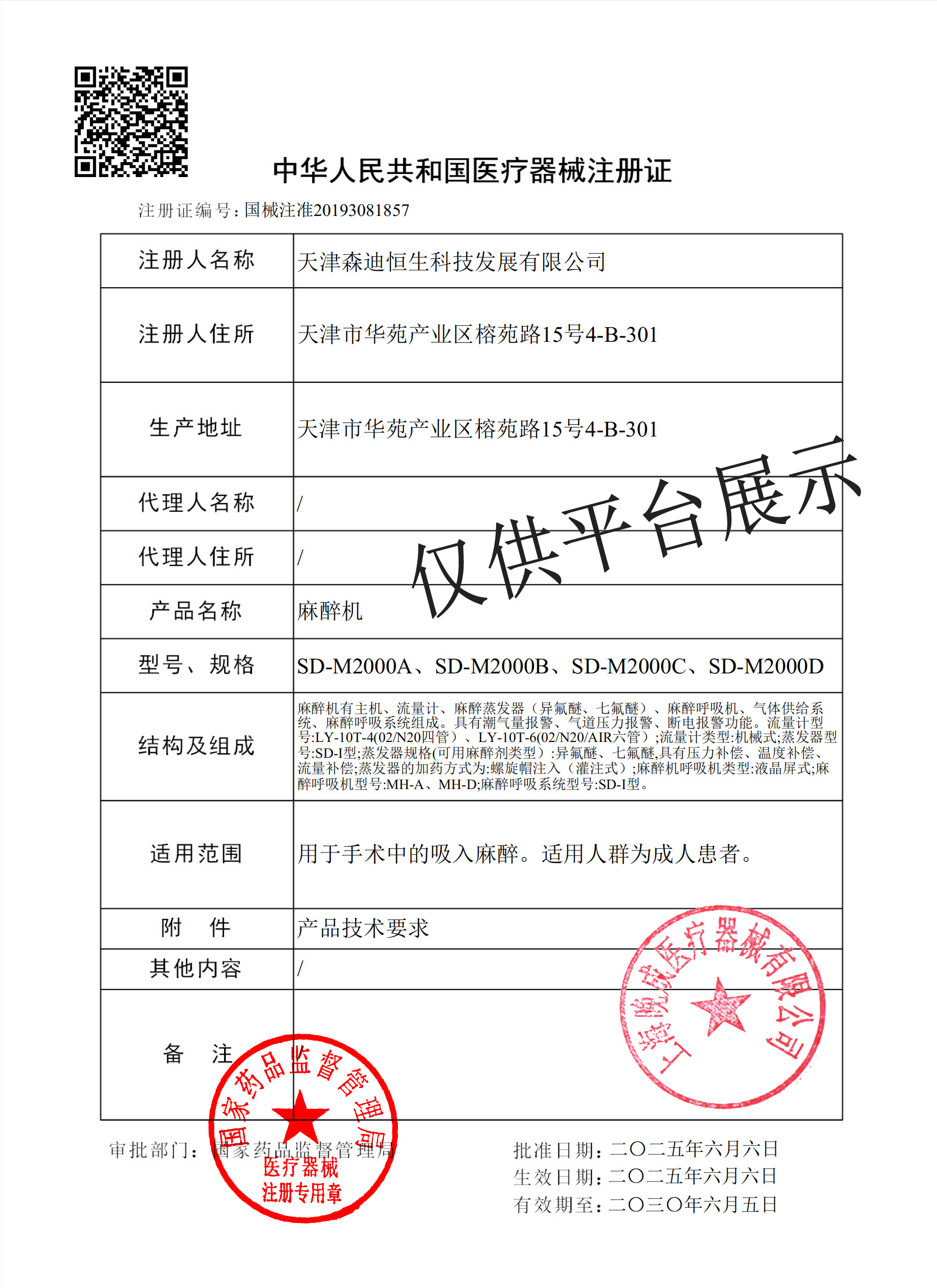 | 產(chǎn)品名稱 : | 森迪恒生 麻醉機(jī)SD-M2000B |